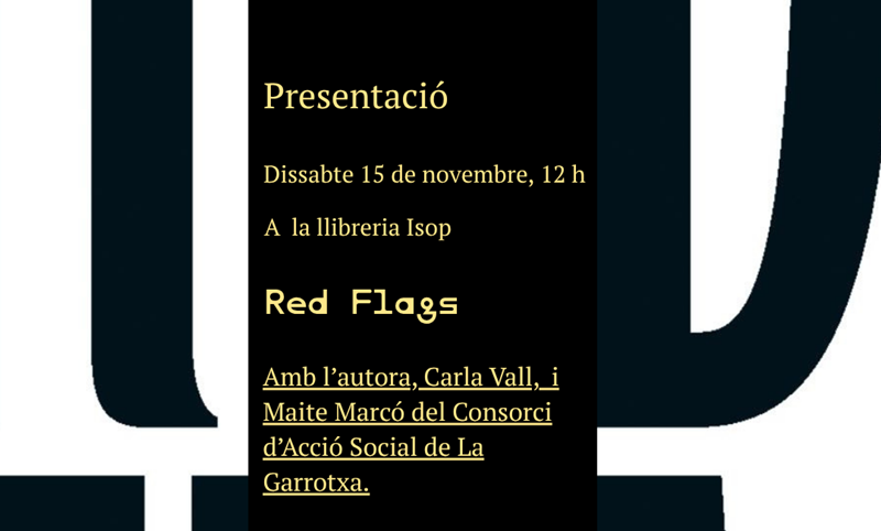 El proper dissabte 15 de novembre a les 12h del migdia es presenta a la llibres ISOP el llibre Red Flags de Carla Vall amb l’autora del llibre i la Maite Marcó directora tècnica de l’àmbit de relacions familiars del […]