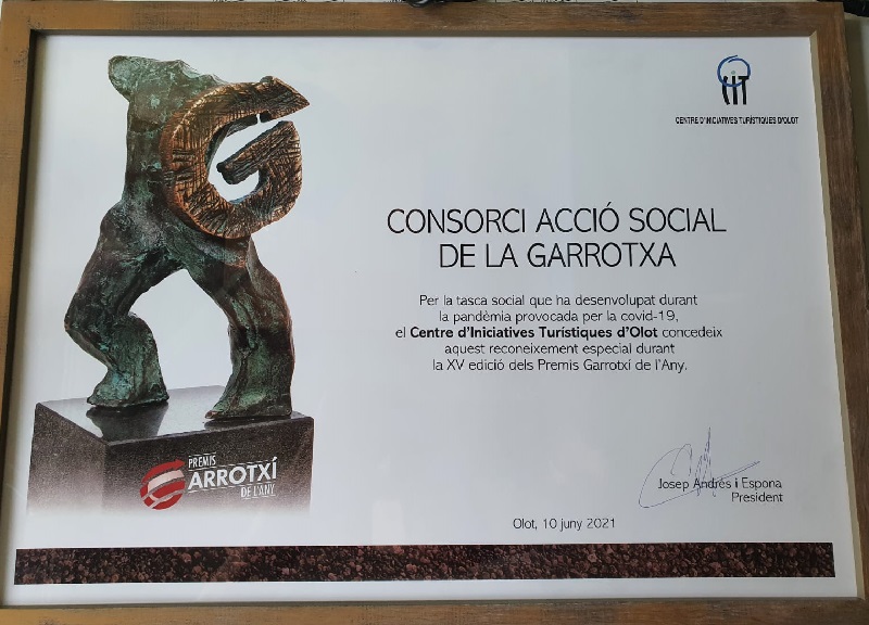 Ahir es van donar aquests premis i aquest any, conjuntament amb tots els serveis essencials, policia municipal, mossos, protecció civil, hospital, àrea bàsica de salut residències de gent gran,… també es va reconèixer al Consorci d’Acció Social de la Garrotxa, per la tasca social que es va desenvolupar durant la pandèmia.