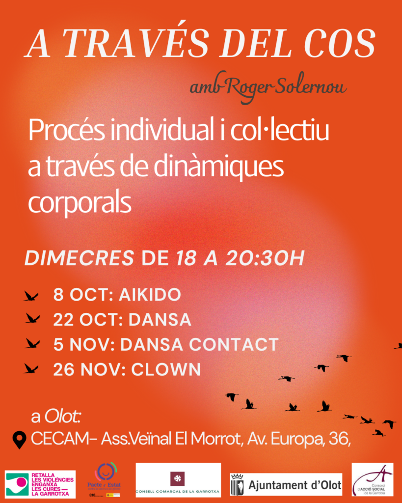 En el marc de la campanya comarcal Retalla les violències, enganxa les cures, s’han organitzat dos tallers per homes: HOMES RECONEIXENT-NOS i HOMES A TRAVÉS DEL COS amb Roger Solernou, psicoterapeuta especialitzat en perspectiva de gènere i en acompanyament a homes, llicenciat en matemàtiques, pintor i pare. Forma part de l’equip terapèutic de l’Espai Obert Empordà de Figueres i és col·laborador d’Entrehomes.